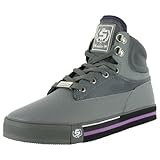 Shmack started as an idea and later became established by two friends. Starting locally with a few dozen T Shirts, retailers began to notice a demand for the eccentric prints with a handmade look. As word spread, so did the business. This Hatchet Mid high top features a lightly perforated synthetic leather exterior, canvas detail around the ankle, logo text along the heel, a padded footbed for cushion and comfort, a self tie lace closure, and a striped flat sole. Style # SF1003. Read more